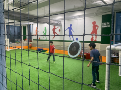 첫날은 전 시간 친구와 잠시 축구를 같이 해보았고 친구가 간 이후는 아이의 운동 능력을 보시려고 다양한 운동을 같이 해보는 듯 보였습니다. 날씨가 좋은 이 날, 자그마한 야외 운동장에서 풍선 던지기도 하고 셔틀런도 하며 땀 흘리며 운동하는 아이. 밖에서 보는 제가 다 뿌듯하더군요.