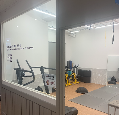 엘리베이터에서 내리자 왼쪽에 안내 데스크가 있고 안내 데스크 안으로 측정평가실, 인지실, 놀이치료실 등이 위치해 있었습니다. 안내데스크 우측으로는 감각통합실과 특수체육실이 있는데 특수체육실과 연결된 건물 밖에 인조잔디가 깔려 있는 야외 공간이 있는 점이 마음에 쏘옥~