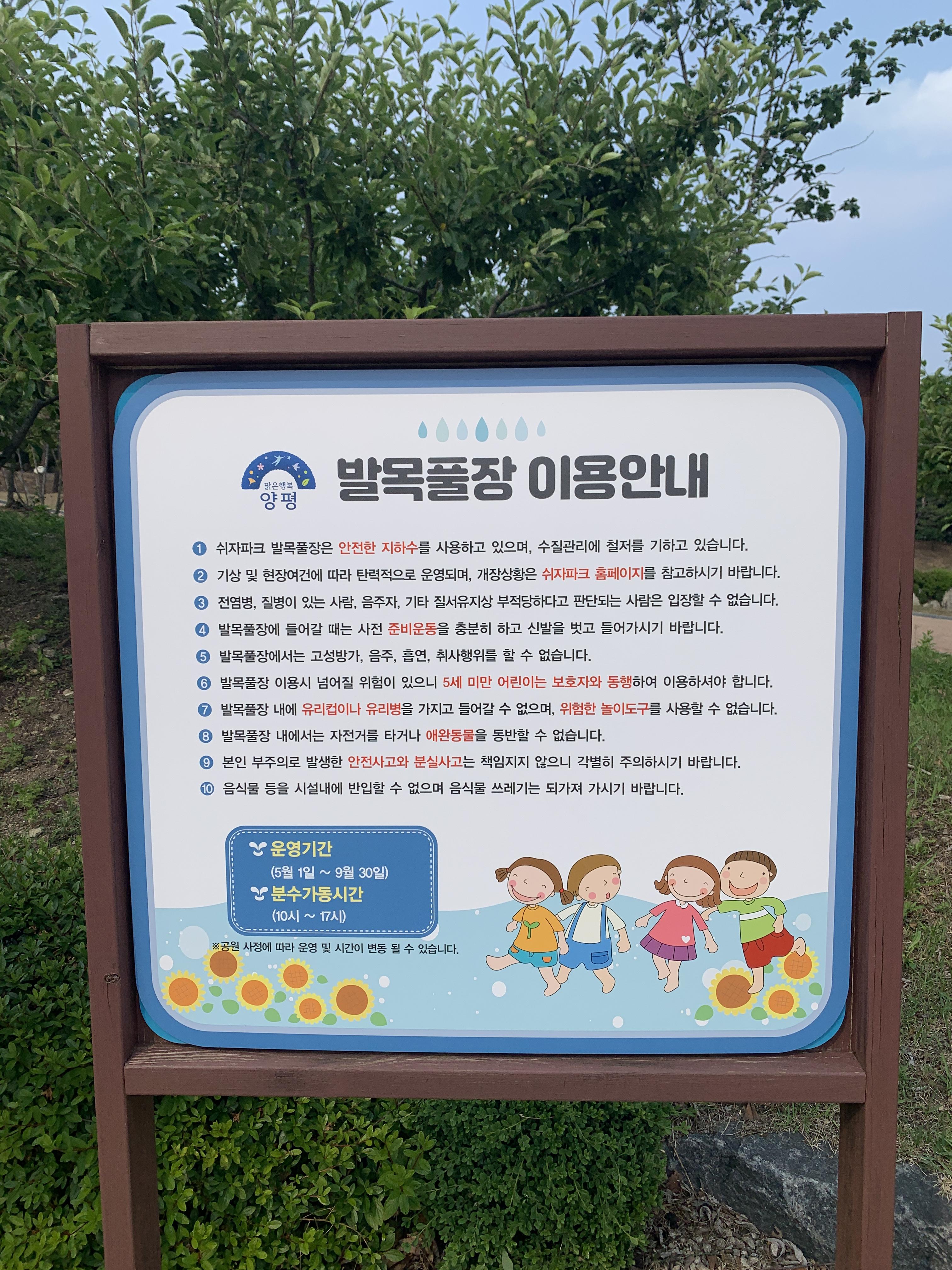 양평의 깨끗한 지하수를 이용한 바닥분수인데, 10시부터 5시까지 매 시간 50분 가동하고 10분 쉬고 하더라고요.