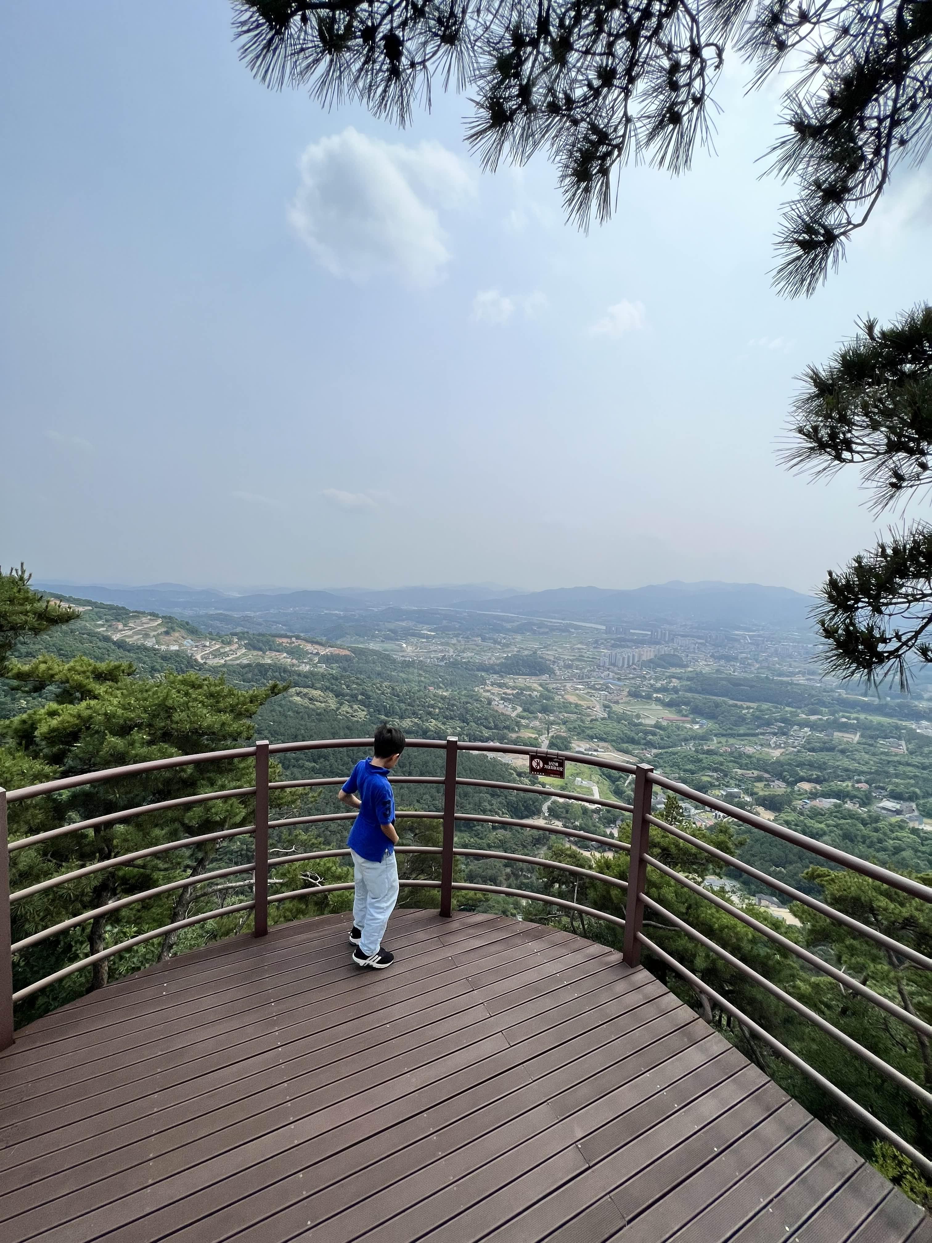 들어서자마자 느껴지는 피톤치드의 기운이 상쾌합니다. 이날은 입장 후 치유전망대를 먼저 올라가 보았습니다. 데크로 이어지는 500m의 계단을 오르다 조금 숨이 찬다 느껴질 때쯤, 짜잔 하고 펼쳐지는 멋진 풍경!